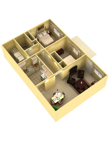 Two bedrooms/one bath, 864 sq. ft. — from $1,230 per month